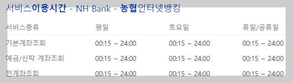 오늘은 농협은행의 다양한 서비스 이용 시간에 대해 알아보려고 합니다.