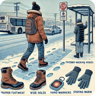 - 특히, 정류장까지 가는 길은 빙판길이 많아 천천히 이동했고, 버스를 기다리며 핫팩으로 손발을 따뜻하게 유지했습니다.