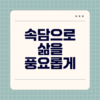 | 소통의 수단 | 일상 대화에서 속담을 활용하면, 간결하게 의미를 전달할 수 있어 의사소통의 효율성을 높입니다. |