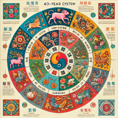 육십갑자는 동아시아에서 사용되는 전통적인 연도 표기 체계로, 하늘의 기운을 나타내는 10개의 천간(天干)과 땅의 기운을 나타내는 12개의 지지(地支)가 조합되어 60년 주기로 순환합니다. 이는 해의 특성과 기운을 점치는데 활용되곤 합니다.